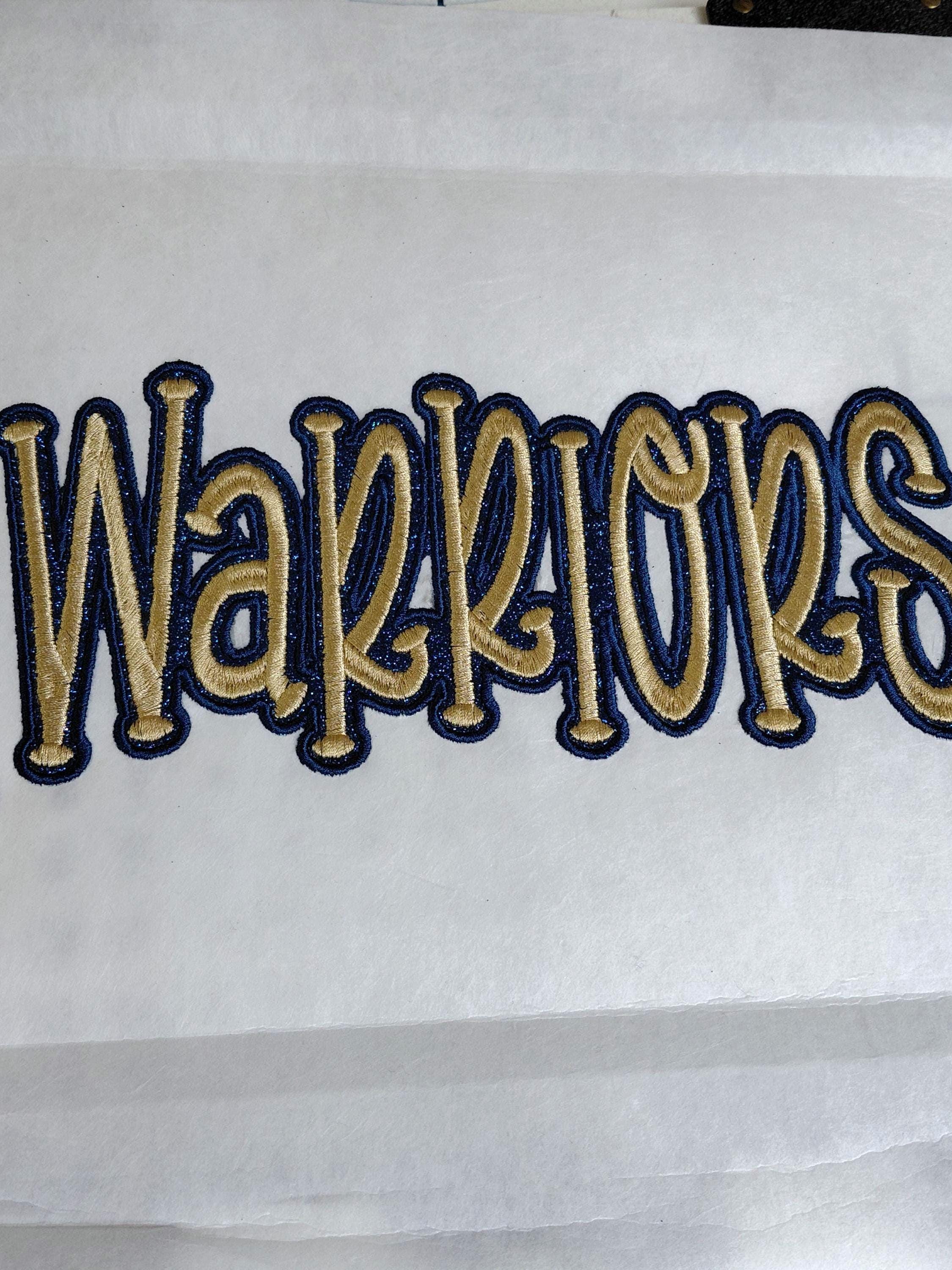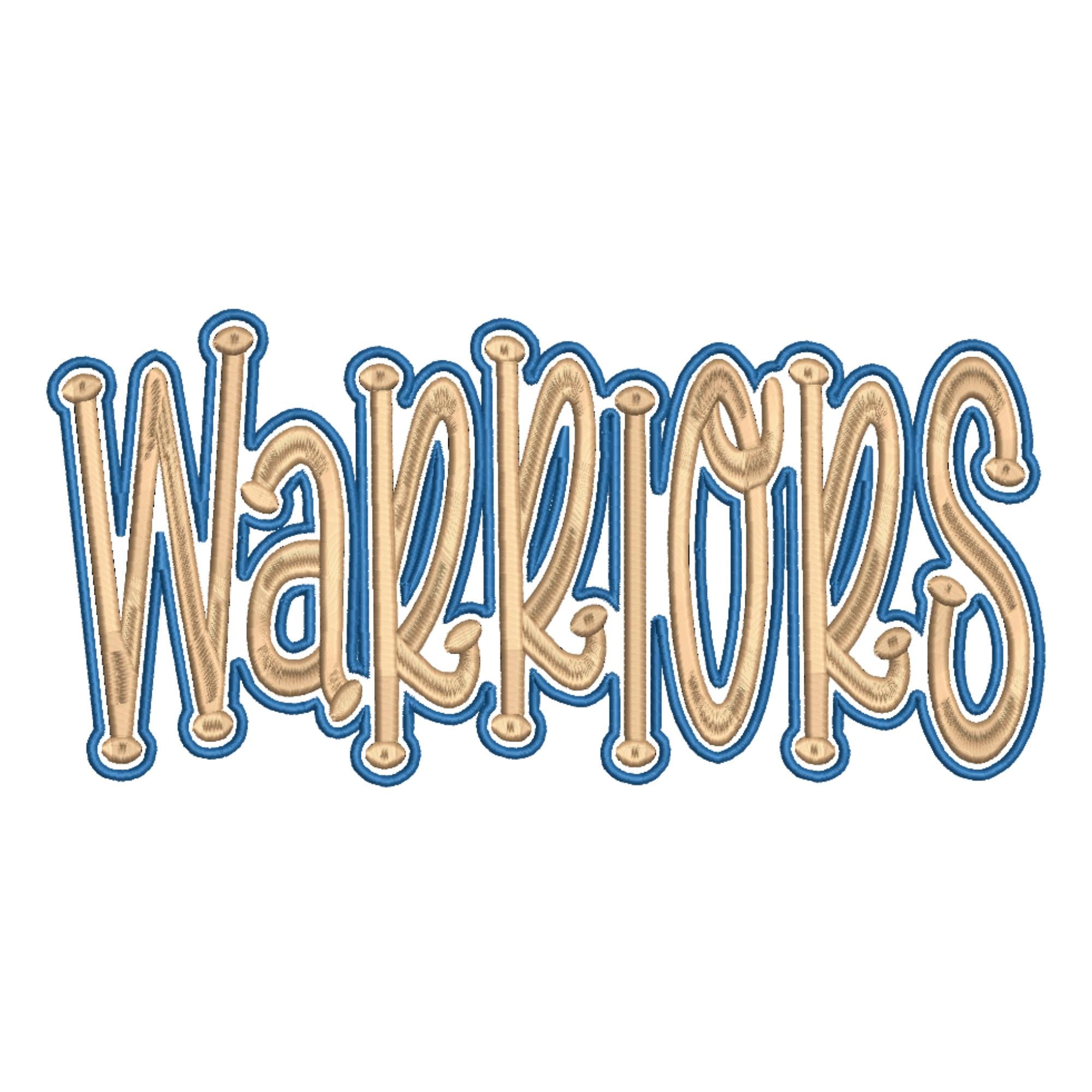 WARRIORS embroidery design, perfect for team spirit projects, school apparel, game day wear, and personalized gifts! Designed for easy applique application, this bold design stitches out beautifully on sweatshirts, t-shirts, bags, and more. Although the design was created as an applique file, you can skip the placement of the fabric/glitter material, and stitch as a regular embroidery design. Details: 2 Size options: 8x4, 10x5 Formats include: DST, EXP, HUS, JEF, PES, VIP, VP3, XXX