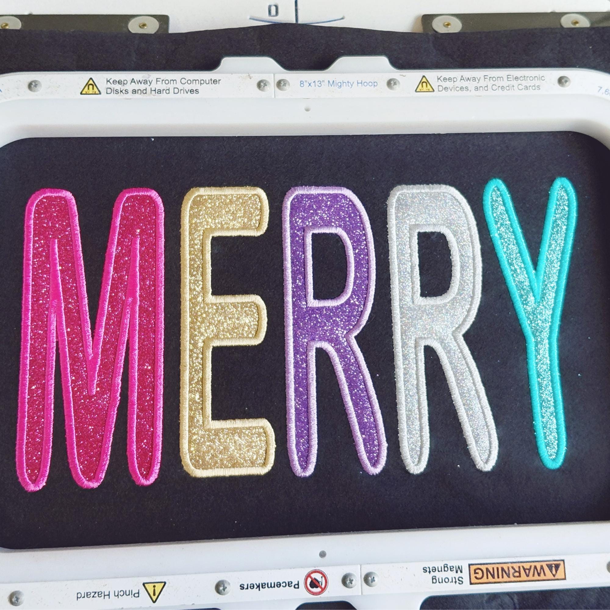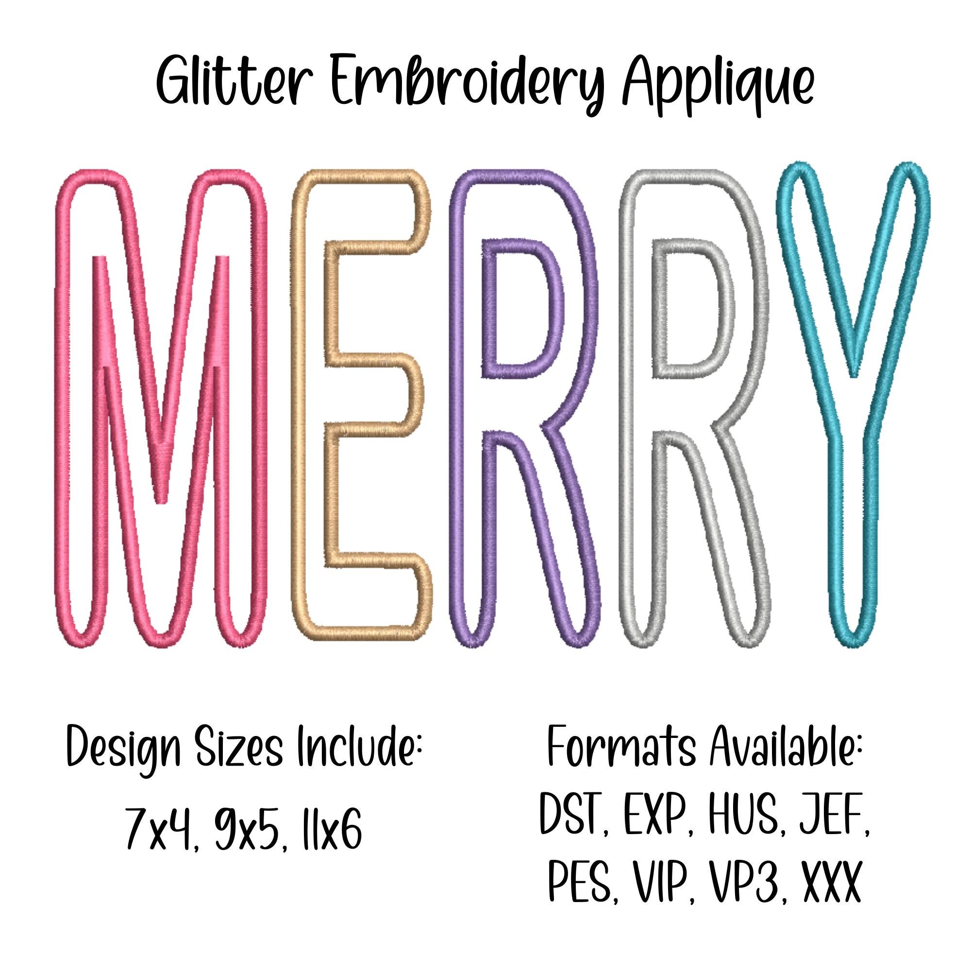 Make your Christmas projects POP with our glitter applique embroidery file. This design is digitized for glitter HTV applique. After stitching is complete, you MUST heat press according to your HTV instructions. This is perfect for those sweatshirt projects. Details: Design size: 7x4, 9x5, 11x6 Formats available: DST, EXP, HUS, JEF, PES, VIP, VP3, XXX