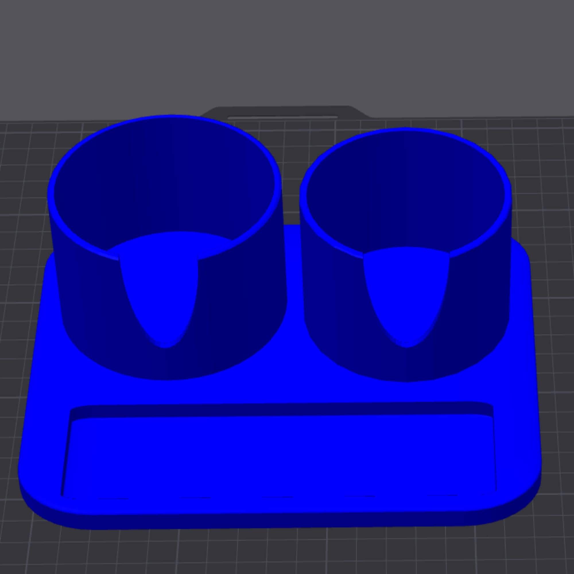 Keep your drinks organized in style with this 3D printable 2-cup holder design! This stl file lets you create your own sturdy, space-saving holder — perfect for desks, vehicles, workshops, or anywhere you need an extra spot for your coffee, tumbler, or water bottle. This design will brand name tumblers of 30oz and 40oz. Details: Fits 2 base cup sizes - 3in and 3.5in Base width 8.5in x 7in Height 3in