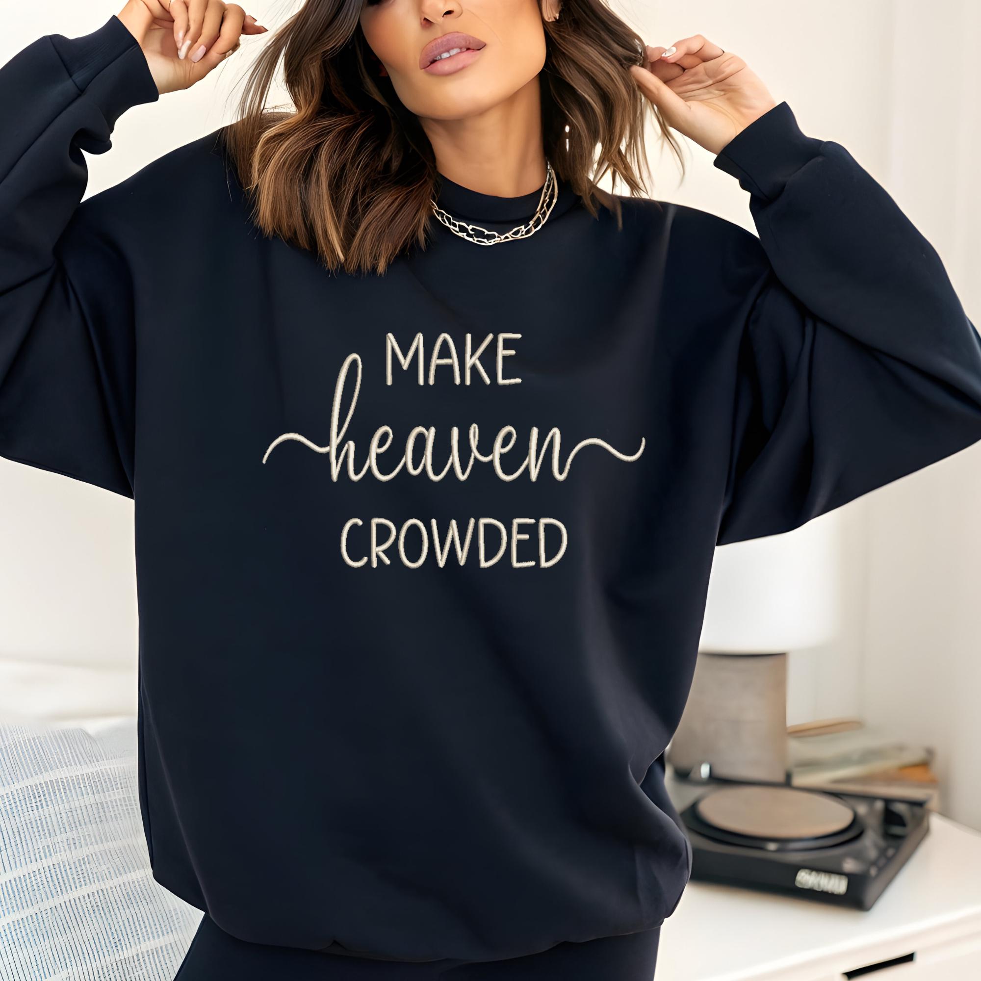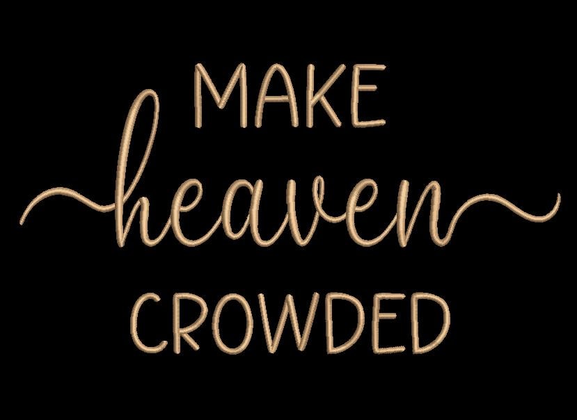Share your faith through stitches with this Make Heaven Crowded Embroidery Design ✝️✨ — a bold and inspirational saying that’s perfect for sweatshirts, hoodies, t-shirts, totes, and home décor. This digital file includes 5 size options, including a large oversized version made specifically for cozy sweatshirt designs. The clean stitching ensures professional-quality results, whether you’re creating for yourself, gifting, or selling finished items in your shop. Details: 5 Size Options: 7x4, 8x5, 9x6, 10x6, 11x6 Formats Available: DST, EXP, HUS, JEF, PES, VIP, VP3, XXX
