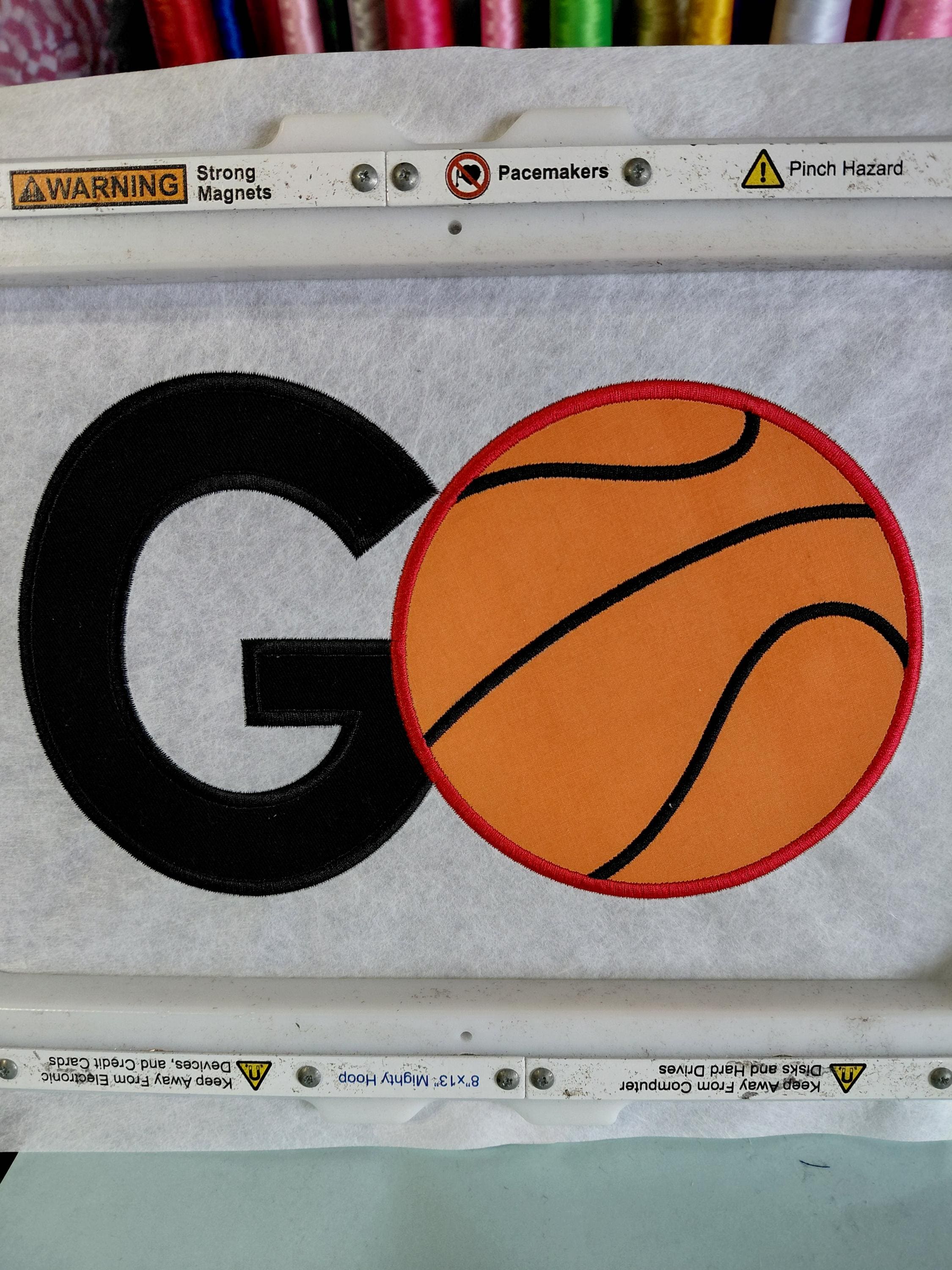 Create your basketball themed projects with a unique applique design. Add a classic sports touch to your embroidery projects with this Basketball Appliqué Embroidery Design! Perfect for team shirts, jerseys, hoodies, backpacks, towels, and game day apparel, this design stitches cleanly and is easy to customize with team colors. Inspiration: Use sequin or glitter HTV for your applique fabric Details: Size 10x6 stitch count 11,401 Formats included: DST, EXP, HUS, JEF, PES, VIP, VP3, XXX