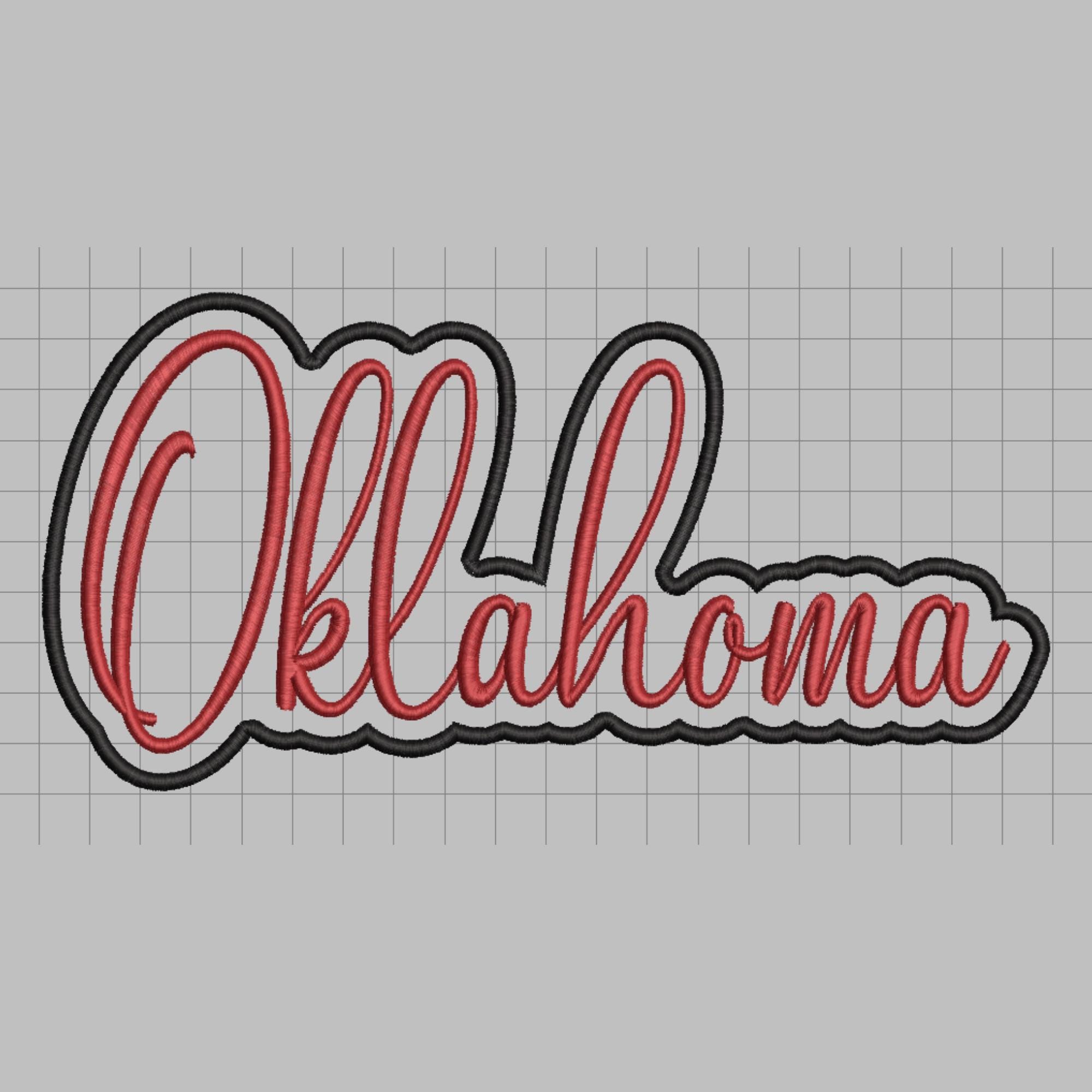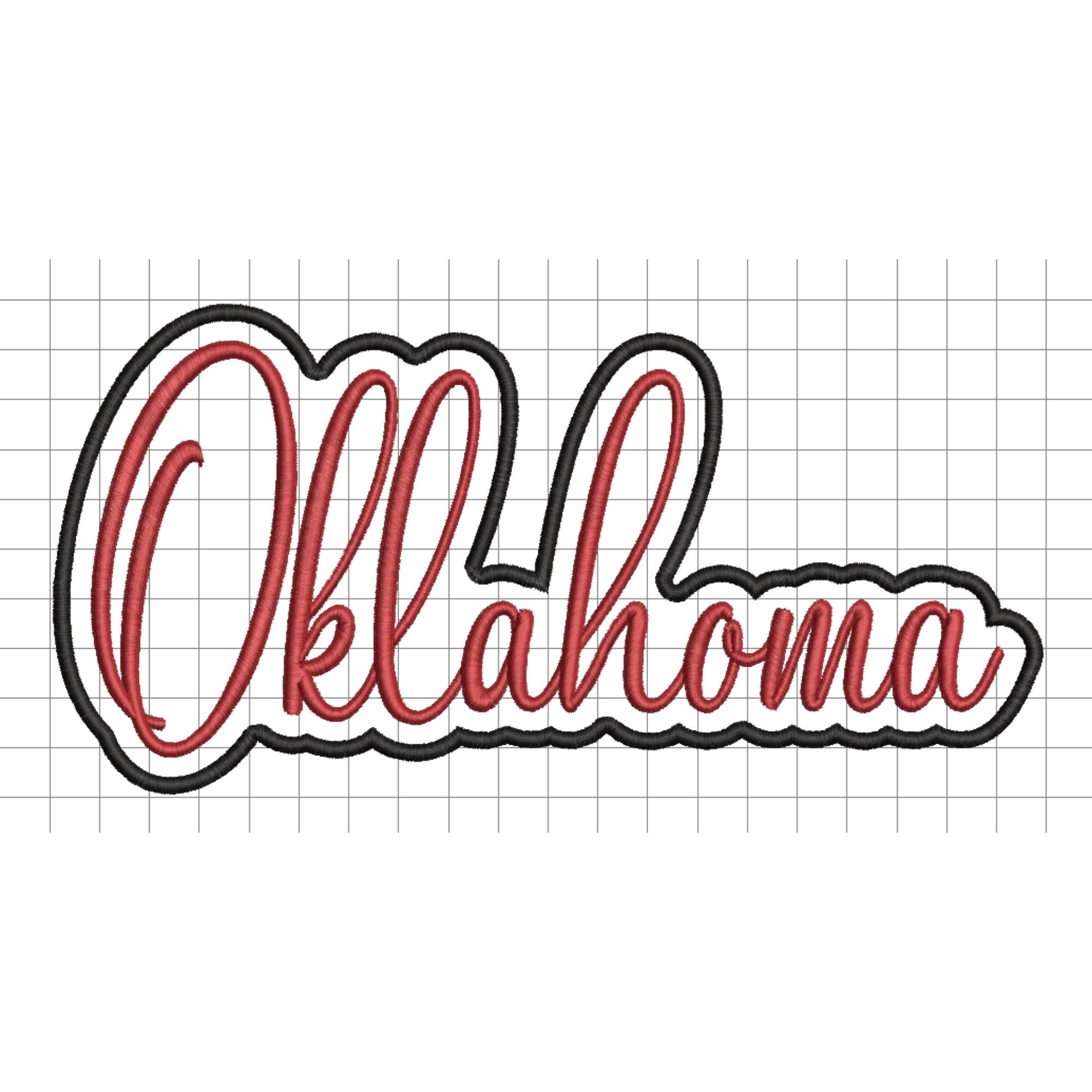 Oklahoma applique embroidery design perfect for machine embroidery projects, including shirts, sweatshirts, baby outfits, tote bags, and custom gifts. This Oklahoma state embroidery file features a clean appliqué outline that stitches beautifully and is easy to use for both beginners and experienced embroiderers.