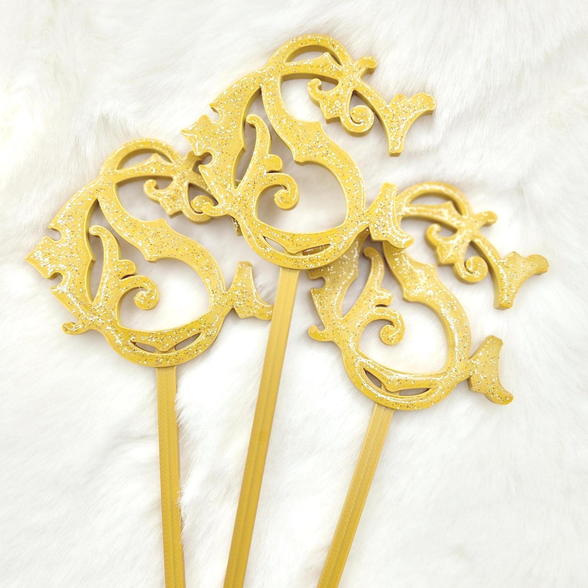 Make every drink feel special with these custom 3D printed monogram swizzle sticks, designed to add elegance and sparkle to any occasion. Each stirrer features a personalized monogram topped with glitter resin, creating a beautiful, eye-catching finish that elevates cocktails, mocktails, and party drinks. Resin detail is applied ONLY to the topper portion of the sticks and will NOT come in contact with liquids.