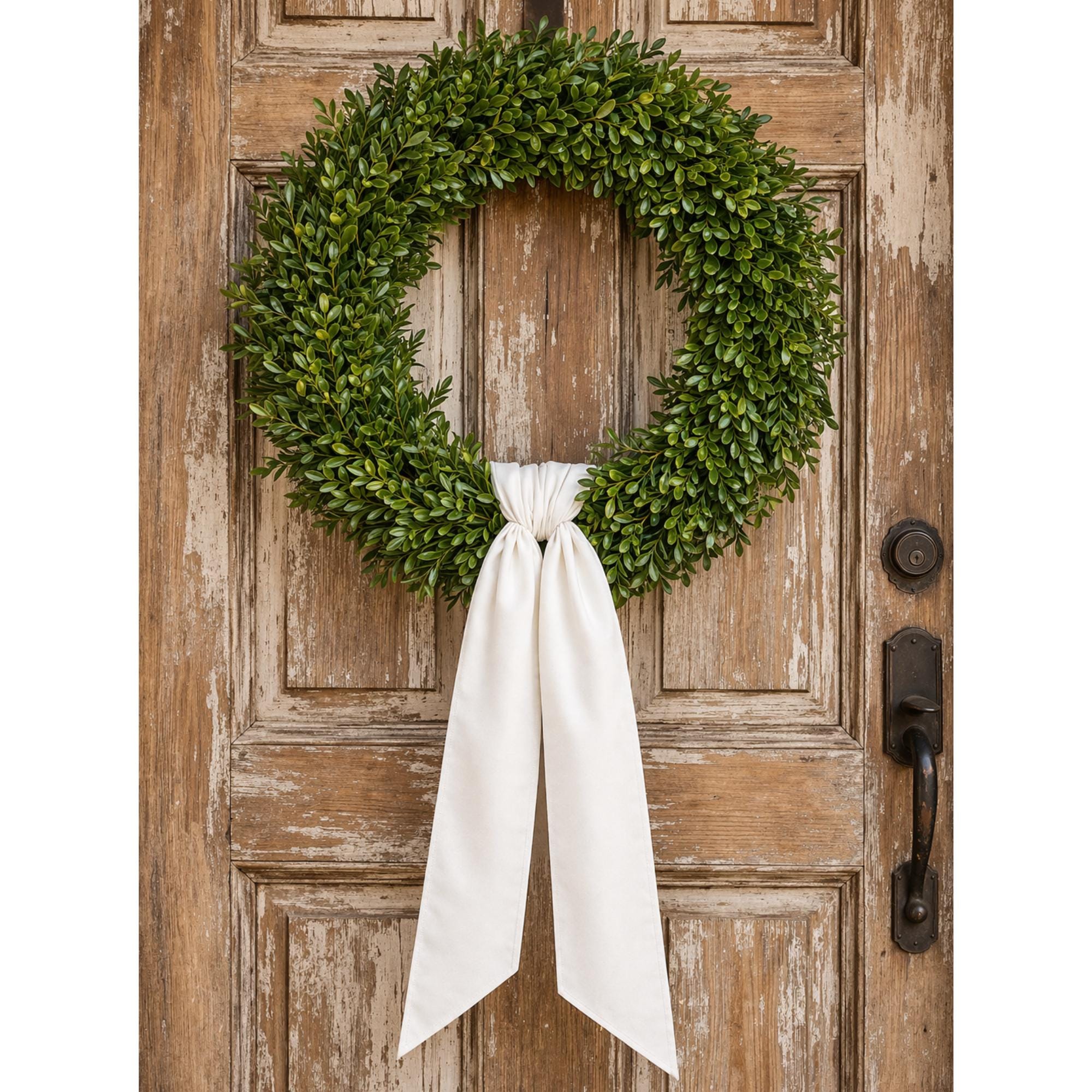 Each sash is carefully sewn in-house for a clean, polished finish and a soft yet structured drape that hangs beautifully on your wreath or display.