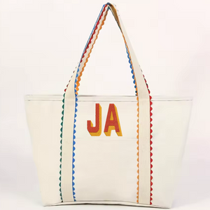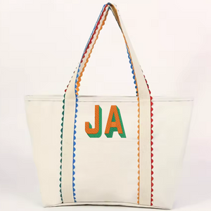 Add a touch of whimsy and charm to your everyday essentials with our Rick Rack Trim Tote. This adorable canvas tote features vibrant rick rack detailing that brings a playful twist to a classic style. Whether you're heading to the farmers market, packing library books, or stashing your latest craft haul, this bag is roomy, durable, and downright cute.
