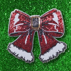 Add a pop of festive charm to your holiday wardrobe or crafts with our Santa Sequin Bow Patch! This playful design features a classic red bow covered in sequins with a iconic Santa's belt design—bringing holiday cheer and sparkle wherever it's placed.